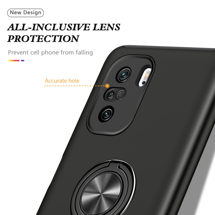 Para Xiaomi Redmi K40 PC + TPU Funda de Teléfono Magnético a Prueba de Golpes con Soporte de Anillo Invisible (Negro)