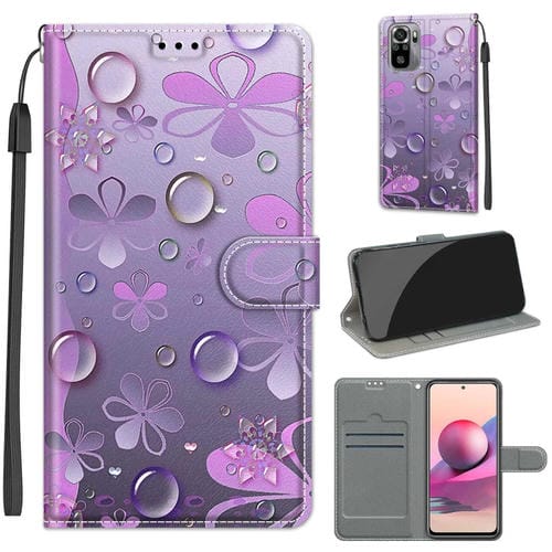 Para Xiaomi Redmi Note 10 4G / Nota 10S Dibujo de Color de Voltaje Cierre Magnético Cierre de Cuero Horizontal Flip Pu Funda con Soporte y Ranuras de Tarjetas (C16 Gota de Agua Seis Petal Flor)