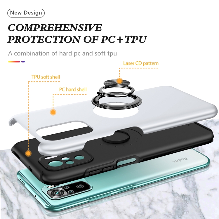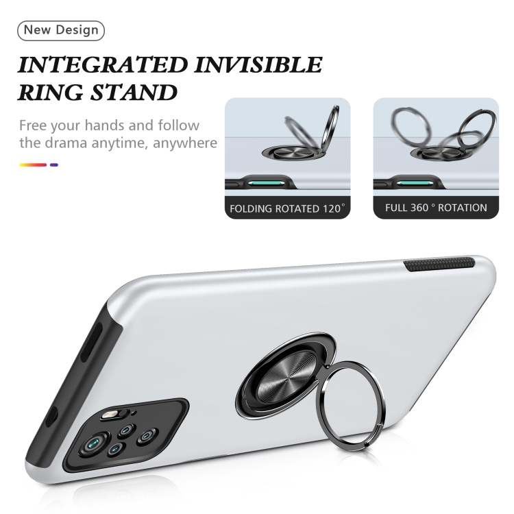 Para Xiaomi Redmi Note 10 4G PC + TPU Funda de Teléfono Magnético a Prueba de Golpes con Titular de Anillo Invisible (Plata)