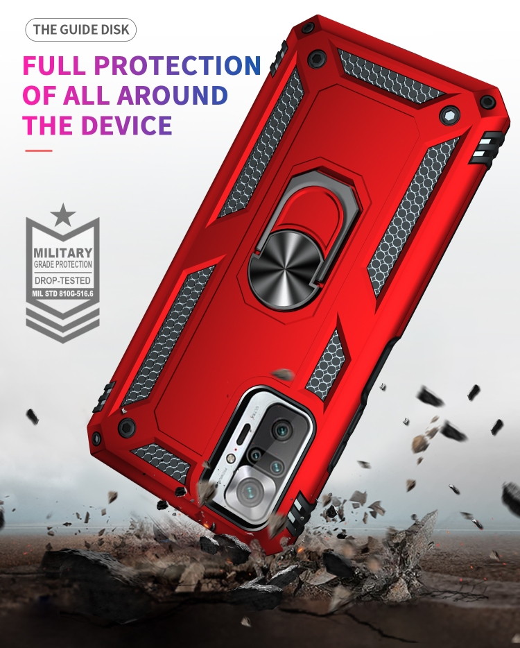 Para Xiaomi Redmi Note 10 Pro a Prueba de Golpes TPU + PC Funda Protectora con Soporte Giratorio de 360 Grados (Rojo)