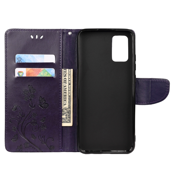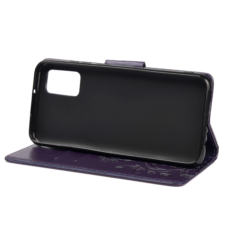 Para Xiaomi Redmi Note 10 Pro Butterfly Flower Pattern Horizontal Flip Funda con Soporte y Ranuras para Tarjetas (Púrpura Profundo)