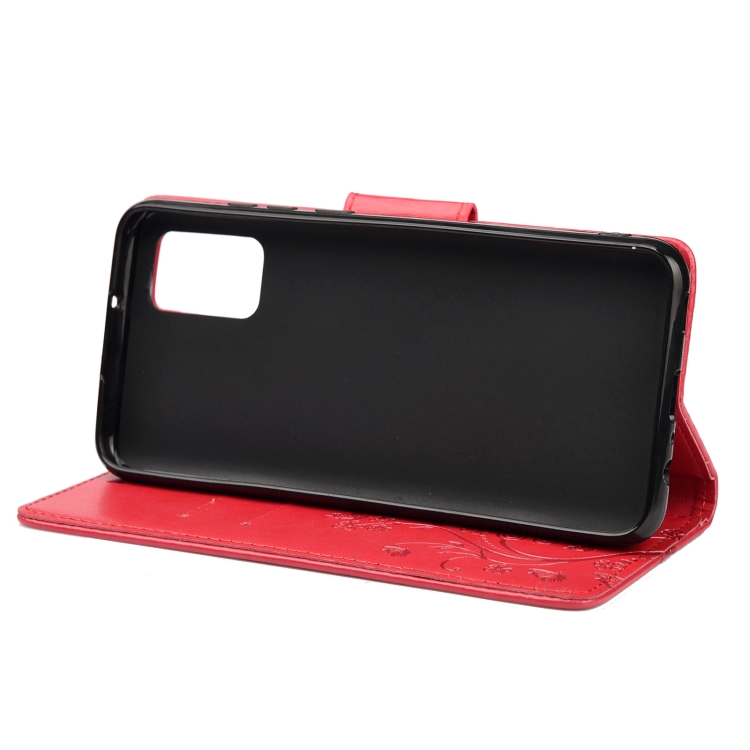 Para Xiaomi Redmi Note 10 Pro Butterfly Flower Pattern Horizontal Flip Funda de Cuero con Soporte y Ranuras para Tarjetas y Billetera (Rojo)