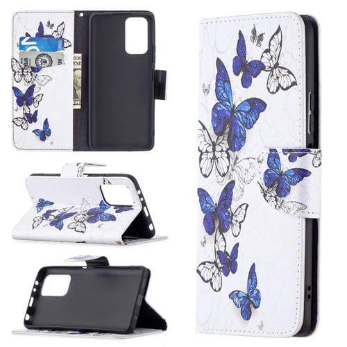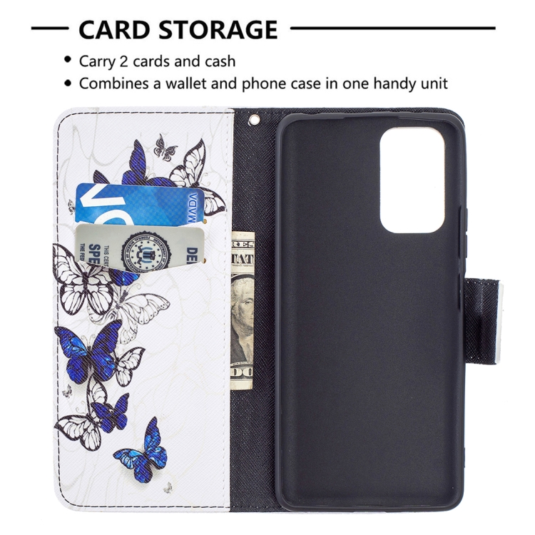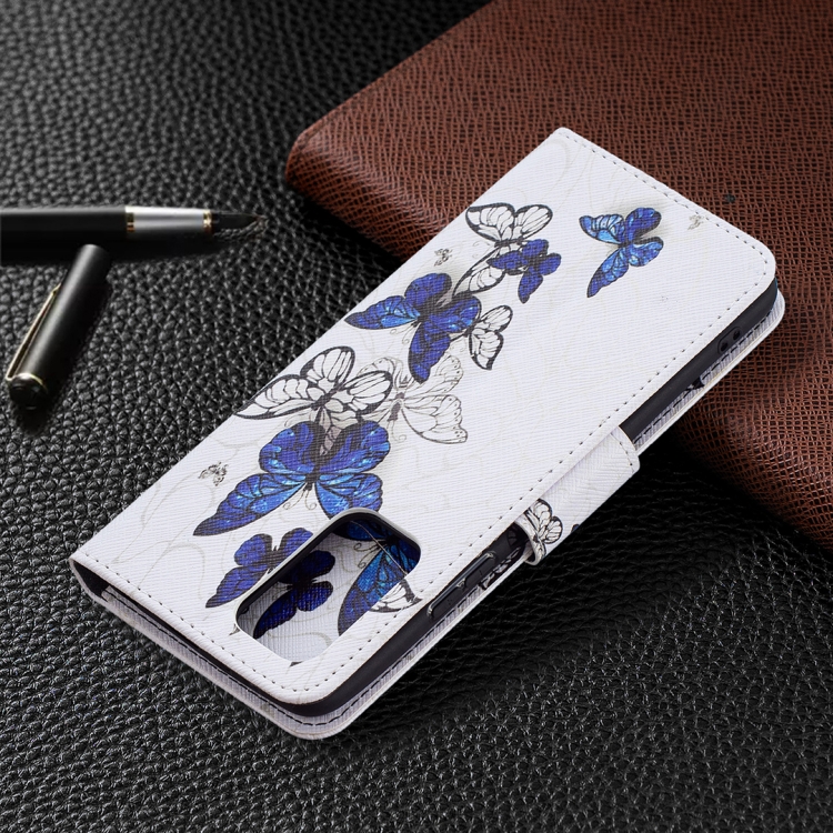 Para Xiaomi Redmi Note 10 Pro Coloree Dibuje Pattern Horizontal Flip Funda de Cuero con Soporte y Tragamonedas y Billetera (Mariposas Azules)