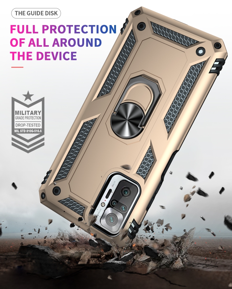 Para Xiaomi Redmi Note 10 Pro Funda Protectora Pro a Prueba de Golpes TPU + PC con Soporte Giratorio de 360 Grados (Oro)
