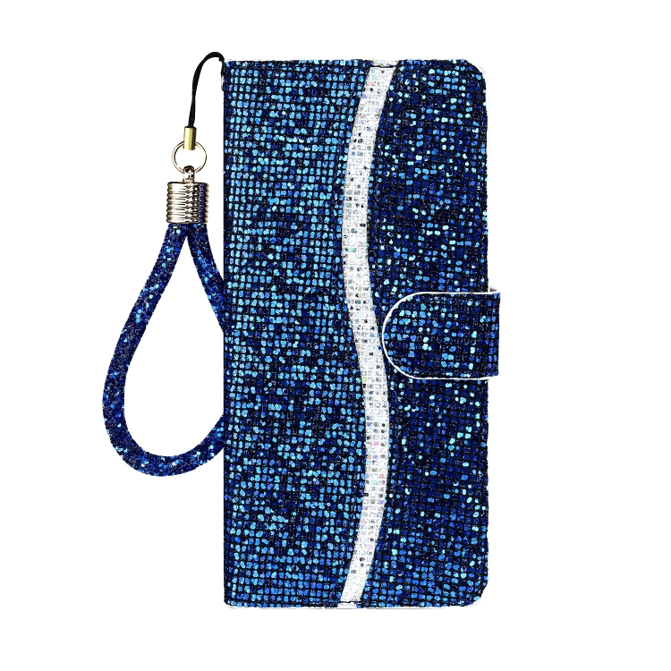 Para Xiaomi Redmi Note 10 Pro Glitter Powder Horizontal Flip Funda de Cuero con Ranuras y Soporte para Tarjeta y Cordón (Azul)
