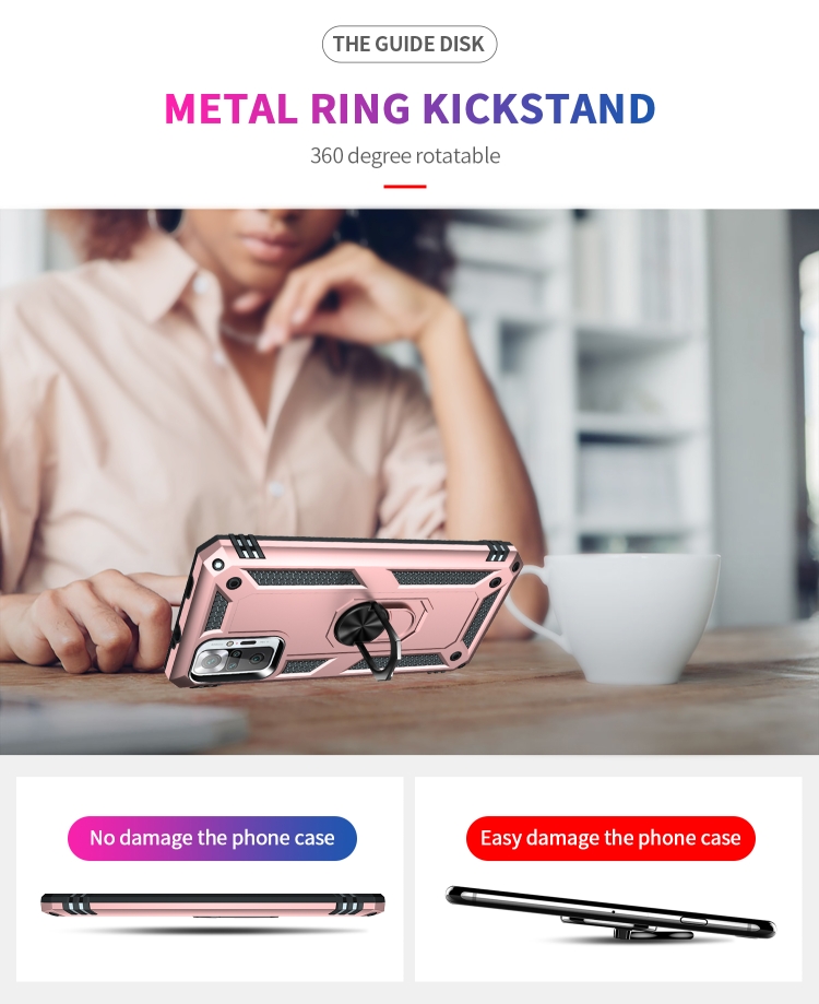 Para Xiaomi Redmi Note 10 Pro Shockproof TPU + PC Funda Protectora con Soporte Giratorio de 360 Grados (Oro Rosa)