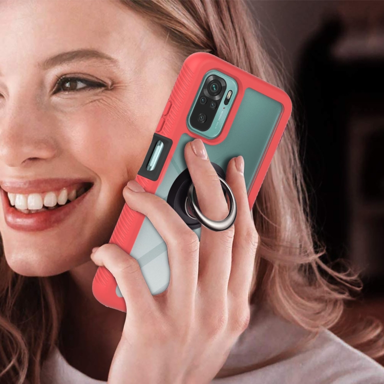 Para Xiaomi Redmi Note 10 Starry Sky Color Solid Color Series PC a Prueba de Golpes PC + TPU Funda Protectora con Soporte de Anillo y Función Magnética (Rojo)