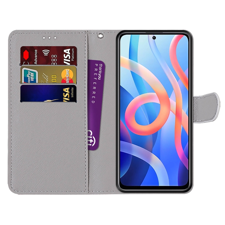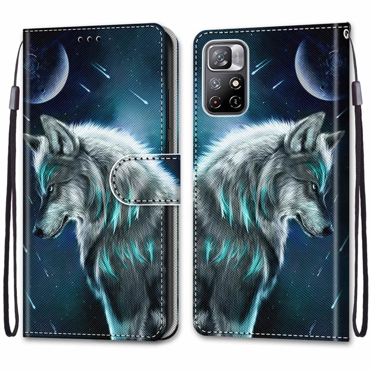 Para Xiaomi Redmi Note 11 Dibujo de Colores Textura Cristrada Crista Horizontal Flip de Cuero de Cuero de Cuerno con Titular y Tarjeta Slots & Wallet & Lanyard (Lobo Pensativo)