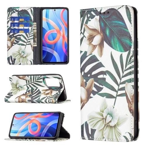 Para Xiaomi Redmi Note 11 Patrón de Dibujo de Color Invisible Magnetic Pu Teléfono de Cuero (Hojas Rojas)