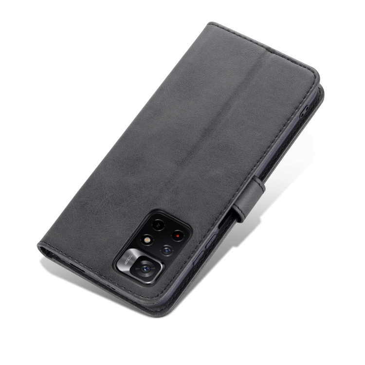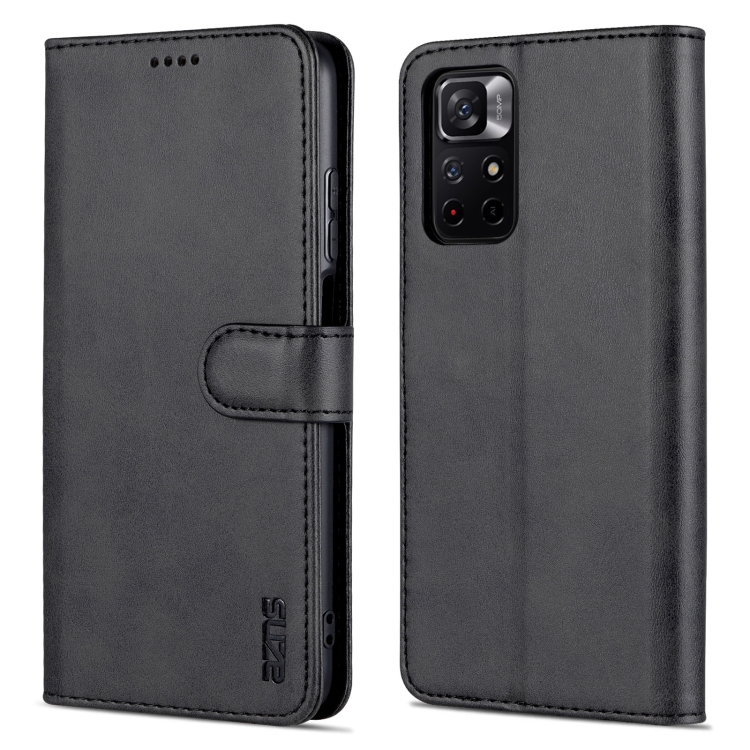 Para Xiaomi Redmi Note 11 / Poco M4 Pro 5G Azns Siente la Piel de la Piel de la Piel de la Carne de la Piel de la Piel de la Carne de Cuero con la Caja del Teléfono con Las Tragamonedas y El Soporte y la Cartera (Negro)
