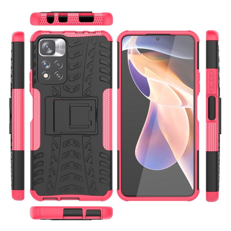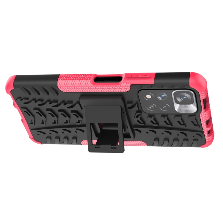 Para Xiaomi Redmi Note 11 Pro (China) Textura de Neumáticos TPU + PC Funda Telefónica con Titular (Rosa)