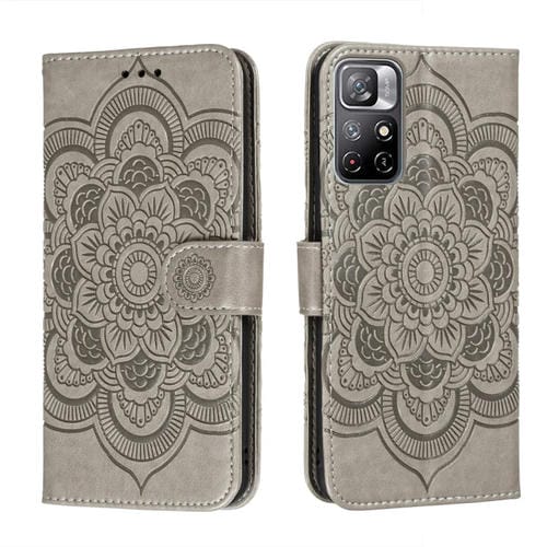 Para Xiaomi Redmi Note 11 Sun Mandala Estuche de Cuero de Patrón de Nieve Mandala con Titular y Slots de Tarjetas y Filtera (Gray)
