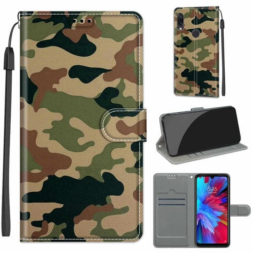 Para Xiaomi Redmi Note 7 Voltaje de Color Dibujo de Color Magnético Cierre de Cuero Horizontal Flip Pu Funda con Soporte y Ranuras para Tarjetas (C15, Camuflaje Amarillo Verde)