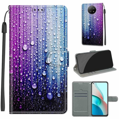Para Xiaomi Redmi Note 9 5G / 9T Tenso de Color Dibujo de Color Magnético Cierre de Cuero Horizontal Flip Pu Funda con Soporte y Ranuras de Tarjetas (C05 Gotas de Agua Azul Púrpura)