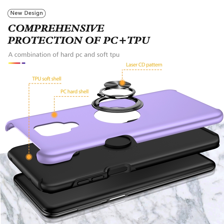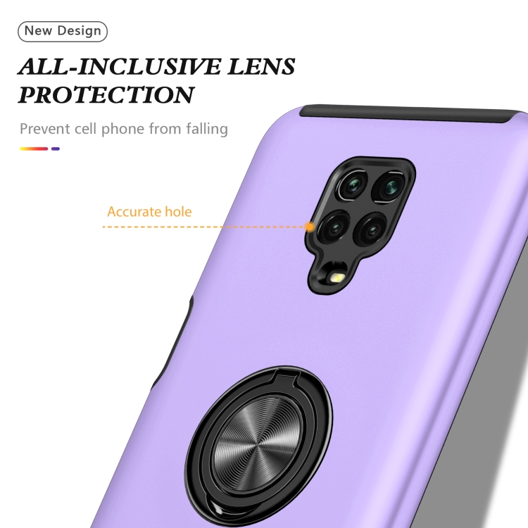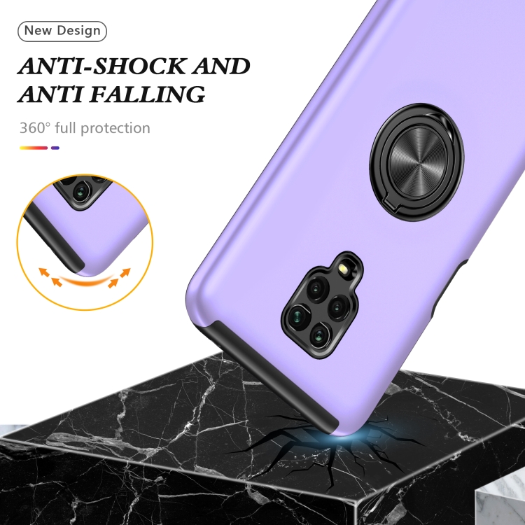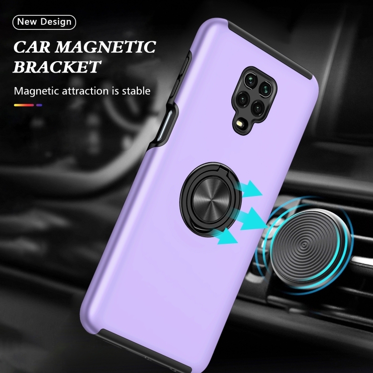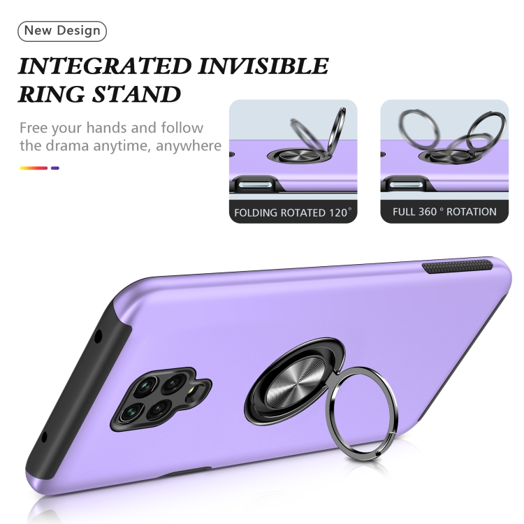 Para Xiaomi Redmi Note 9 PC / Note 9S PC + TPU Funda de Teléfono Magnético a Prueba de Golpes con Titular de Anillo Invisible (Púrpura)