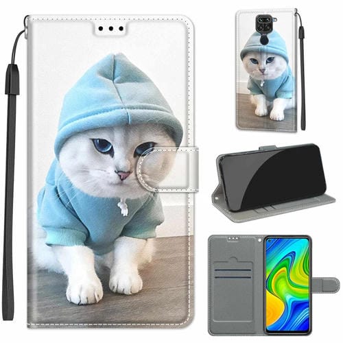 Para Xiaomi Redmi Note 9 / Redmi 10X 4G de Color de Voltaje de Color Magnético Clascar Horizontal Flip Pu Funda de Cuero con Soporte y Ranuras de Tarjetas (C15 Suéter Azul Blanco Gato)