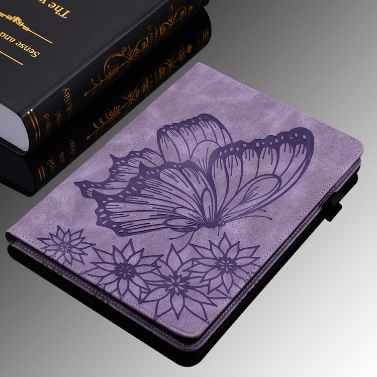 Para Xiaomi Redmi Pad Se Funda para Tableta de Cuero con Relieve de Mariposa Grande (Púrpura)
