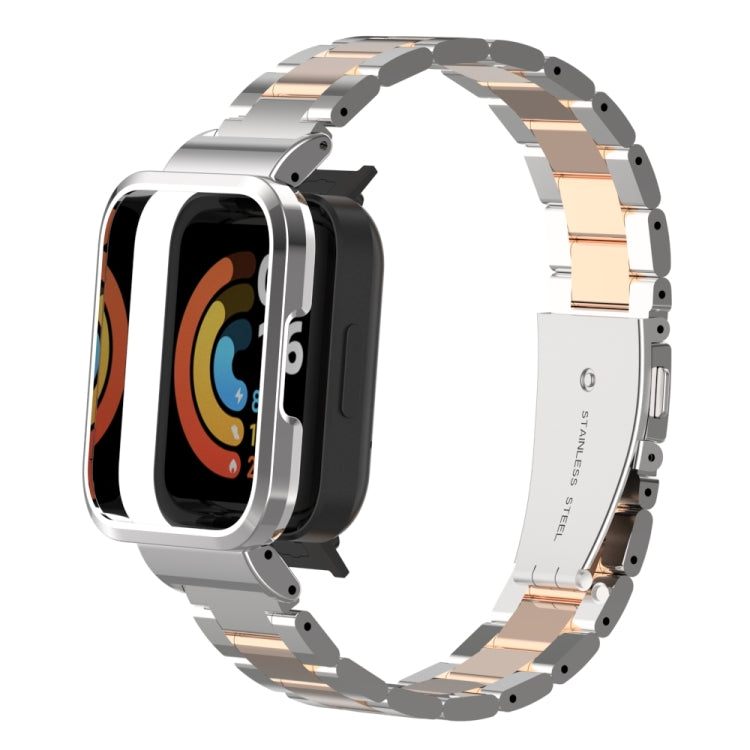 Para Xiaomi Redmi Watch 2 banda de reloj de metal de tres cuentas (plata + oro rosa)