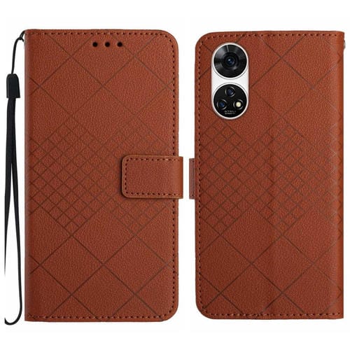 Funda de Cuero para ZTE Anshin Family A303Zt con Textura de Rejilla Rómbica (Marrón)
