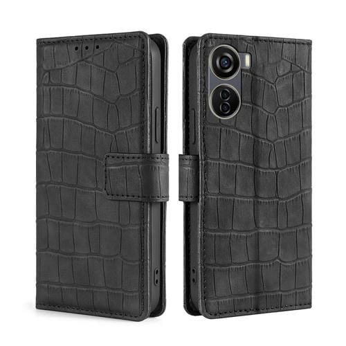 Funda de Cuero ZTE Axon 40 Lite Skin Feel Cocodrilo Cierre Magnético (Negro)