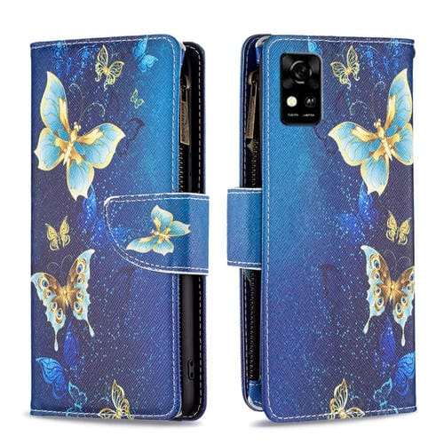 Funda de Cuero para ZTE Blade A31 con Patrón Cremallera Horizontal (Mariposa Dorada)