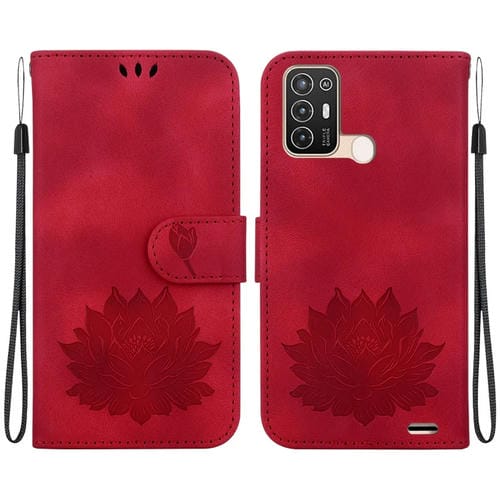 Funda de Cuero para ZTE Blade A52 con Relieve de Loto (Rojo)