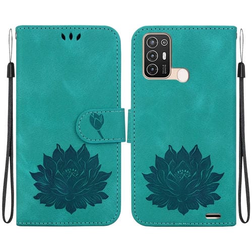 Funda de Cuero para ZTE Blade A52 con Relieve de Loto (Verde)