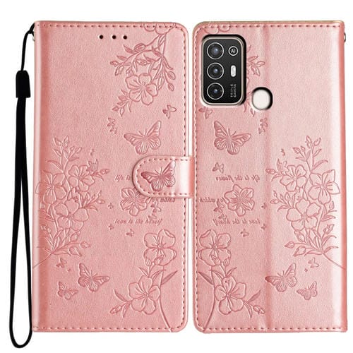 Funda para ZTE Blade A52 de Cuero con Relieve Flor Amor y Mariposa (Oro Rosa)