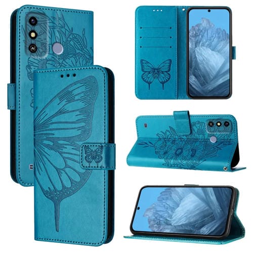 Funda de Cuero para ZTE Blade A53 con Mariposa en Relieve (Azul)
