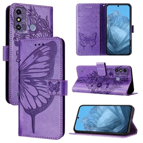 Funda de Cuero para ZTE Blade A53 con Mariposa en Relieve (Púrpura)