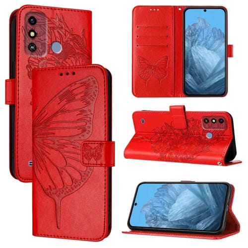 Funda de Cuero para ZTE Blade A53 con Mariposa en Relieve (Rojo)