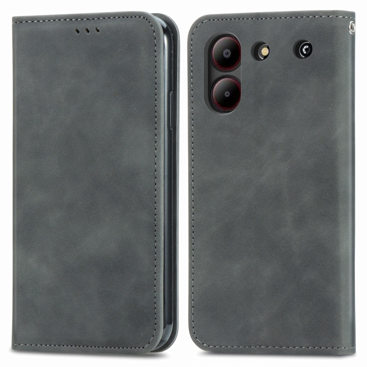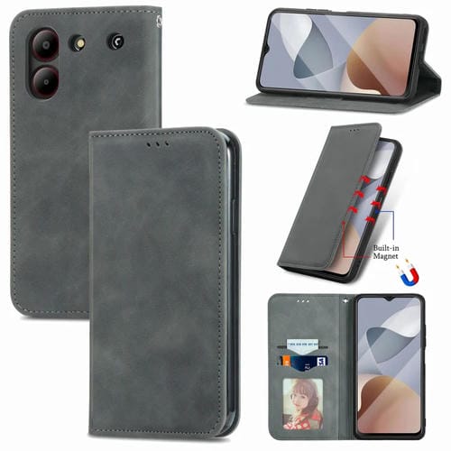 Funda para ZTE Blade A54 Cuero Magnético con Sensación de Piel Retro (Gris)