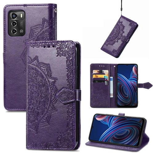 Funda de Cuero En Relieve Mandala Flower para ZTE Blade A72 4G (Púrpura)