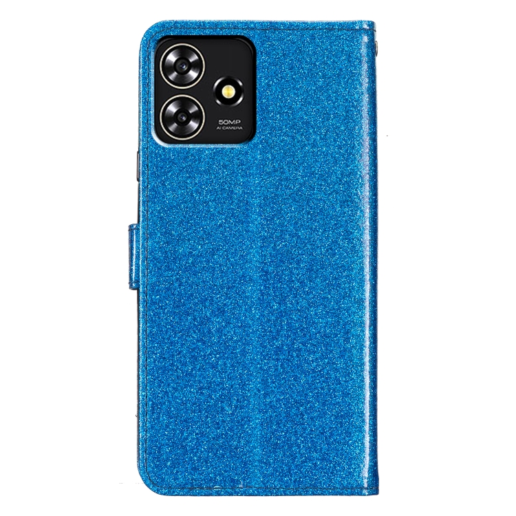 Funda de Cuero para ZTE Blade A73 4G con Tapa en Polvo y Purpurina (Azul)