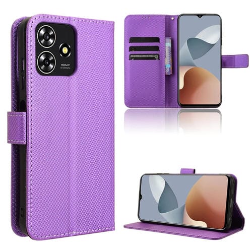 Funda de Cuero para ZTE Blade A73 4G con Textura de Diamante (Púrpura)
