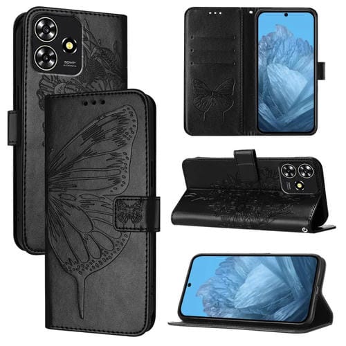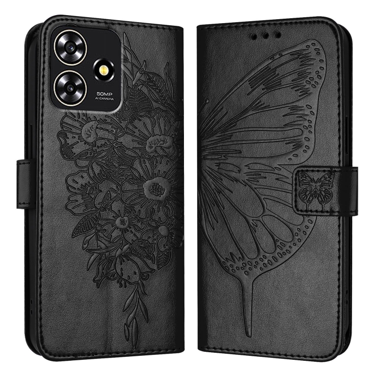 Funda de Cuero para ZTE Blade A73 4G con Mariposa en Relieve (Negro)