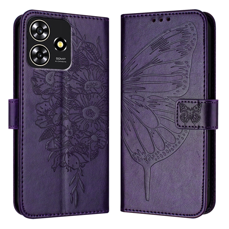 Funda de Cuero para ZTE Blade A73 4G con Mariposa en Relieve (Púrpura Oscuro)
