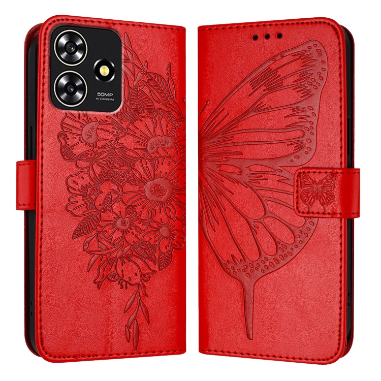 Funda de Cuero para ZTE Blade A73 4G con Mariposa en Relieve (Rojo)