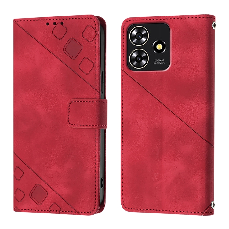 Funda de Cuero para ZTE Blade A73 4G Skin Feel en Relieve (Rojo)