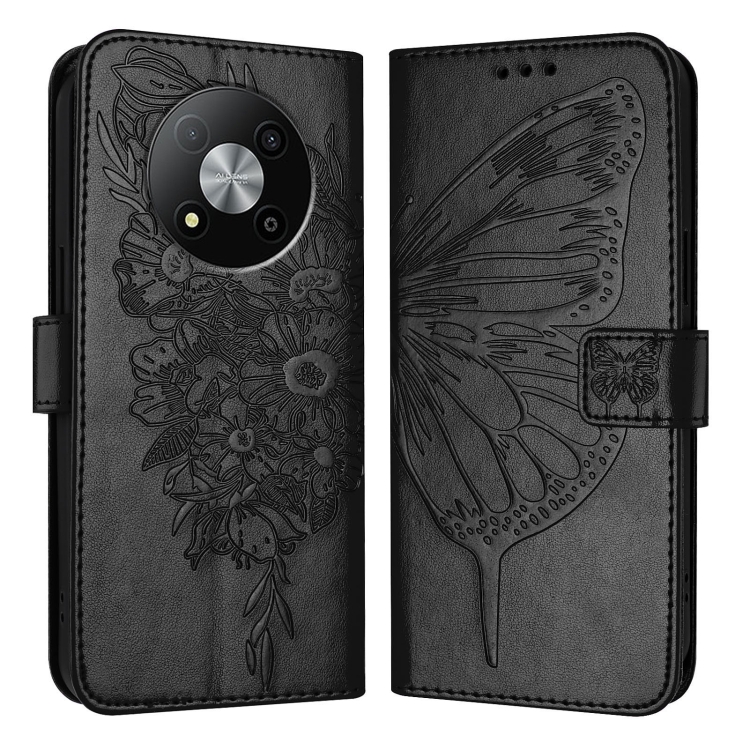 Funda de Cuero para ZTE Blade A73 5G con Mariposa en Relieve (Negro)