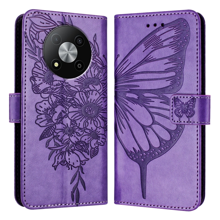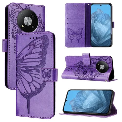 Funda de Cuero para ZTE Blade A73 5G con Mariposa en Relieve (Púrpura)