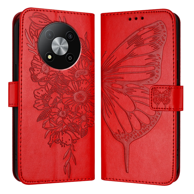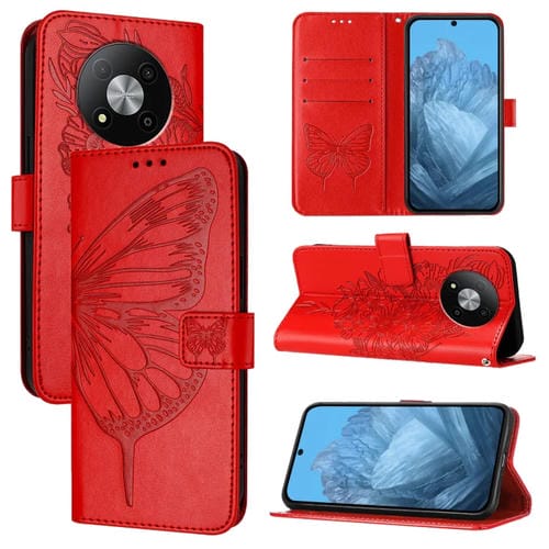 Funda de Cuero para ZTE Blade A73 5G con Mariposa en Relieve (Rojo)