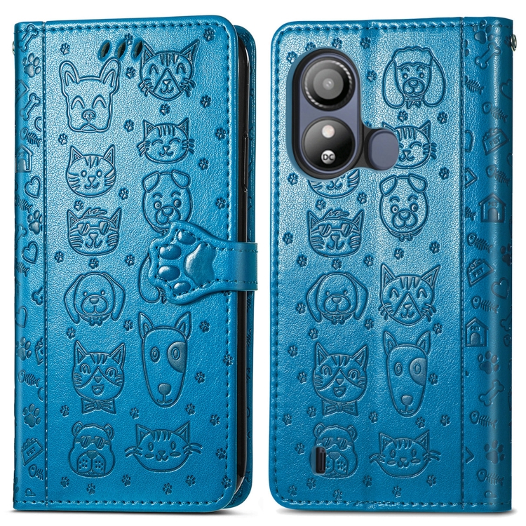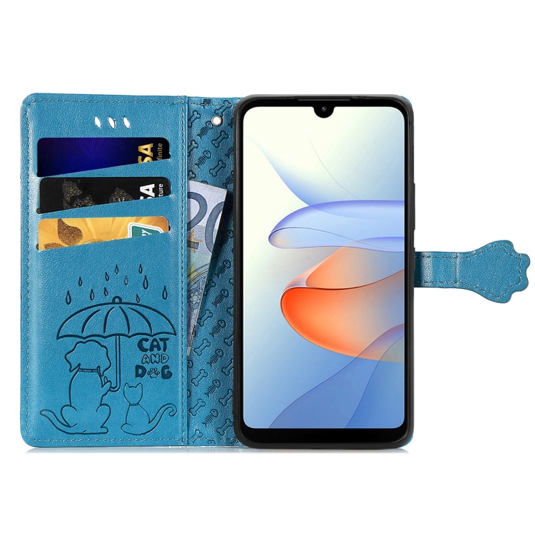 Funda para teléfono ZTE Blade L220 Cuero con Relieve de Gato y Perro (Azul)