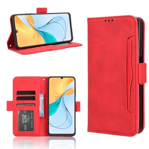 Funda de Cuero para ZTE Blade V50 Vita 4G con Ranuras para Tarjetas y Textura Skin Feel (Rojo)