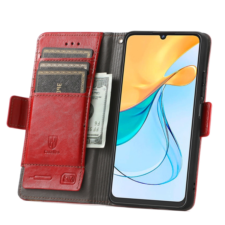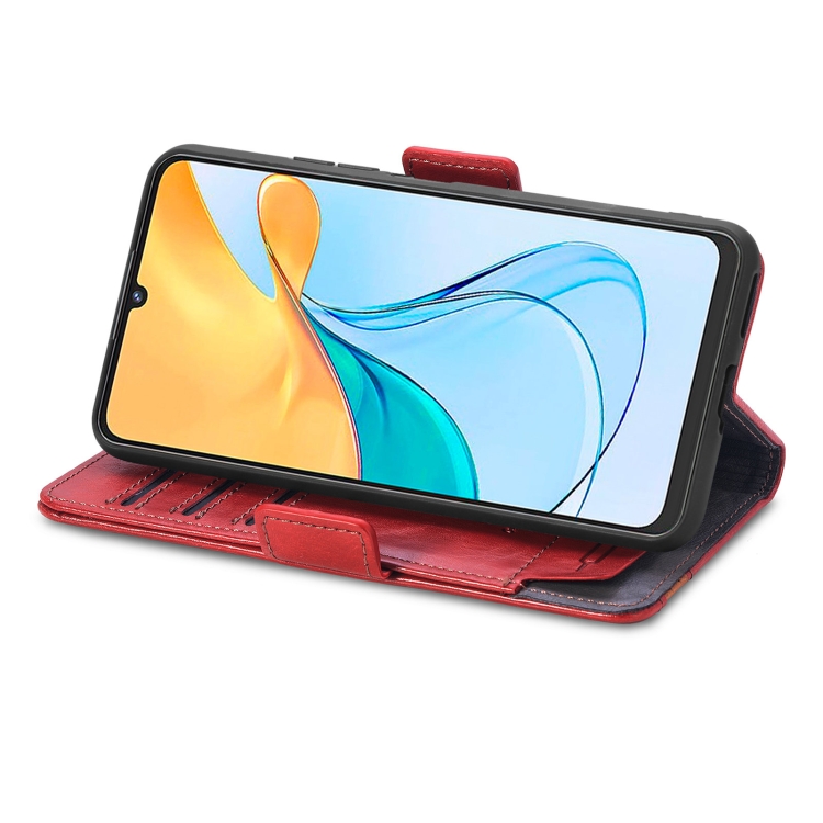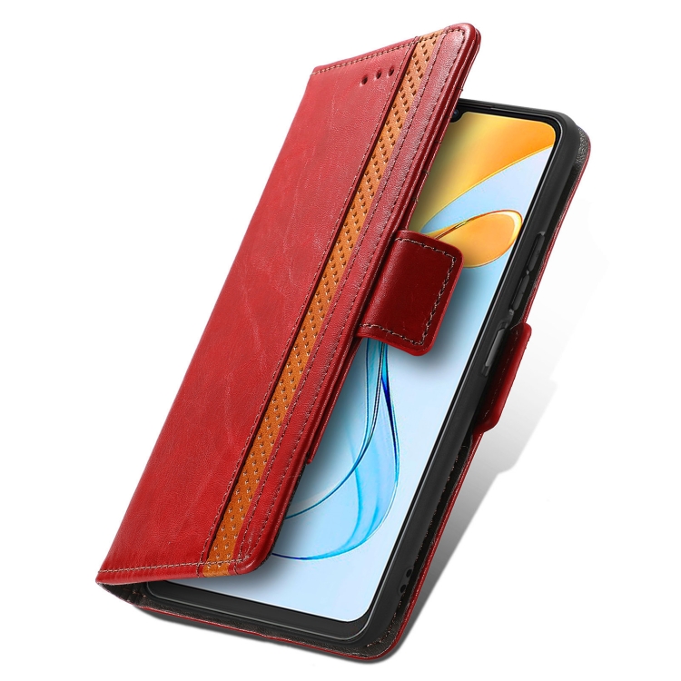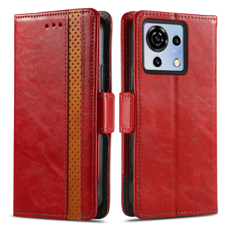 Funda de Cuero Caseneo para ZTE Blade V50 Vita con Hebilla Magnética Dual (Rojo)