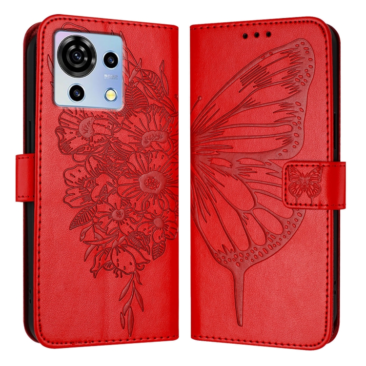 Funda de Cuero para ZTE Blade V50 Vita con Mariposa en Relieve (Rojo)
