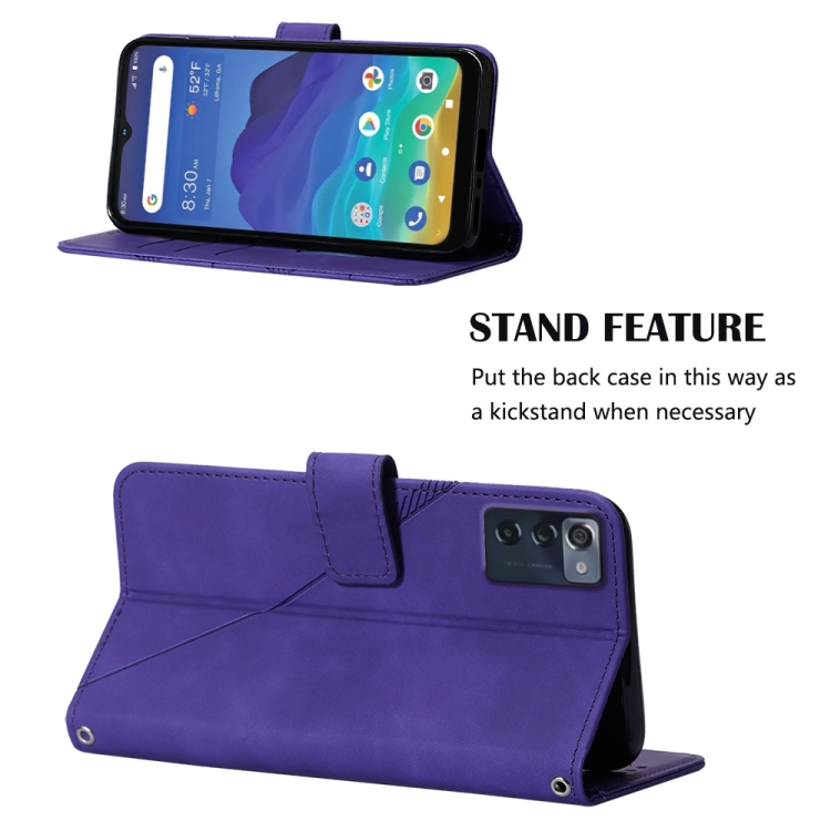 Funda de Cuero con Tapa para ZTE Consumer Cellular Zmax 5G Crossbody 3D (Púrpura)