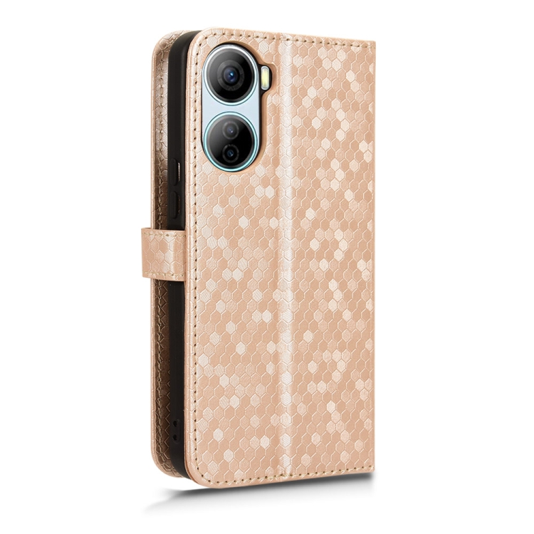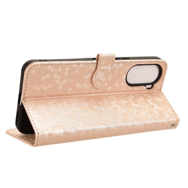 Funda de Cuero para ZTE Libero 5G Iv con Textura de Punto de Panal (Dorado)
