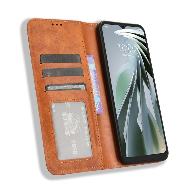 Funda para ZTE Libero 5G Iv de Cuero con Textura Retro y Hebilla Magnética (Marrón)