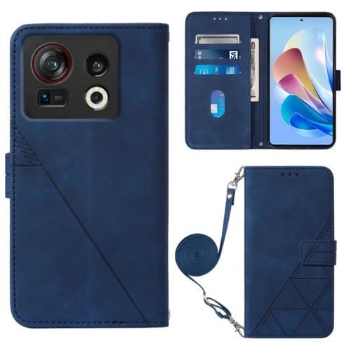 Funda de Cuero para ZTE Nubia Z40S Pro Crossbody 3D con Tapa en Relieve (Azul)